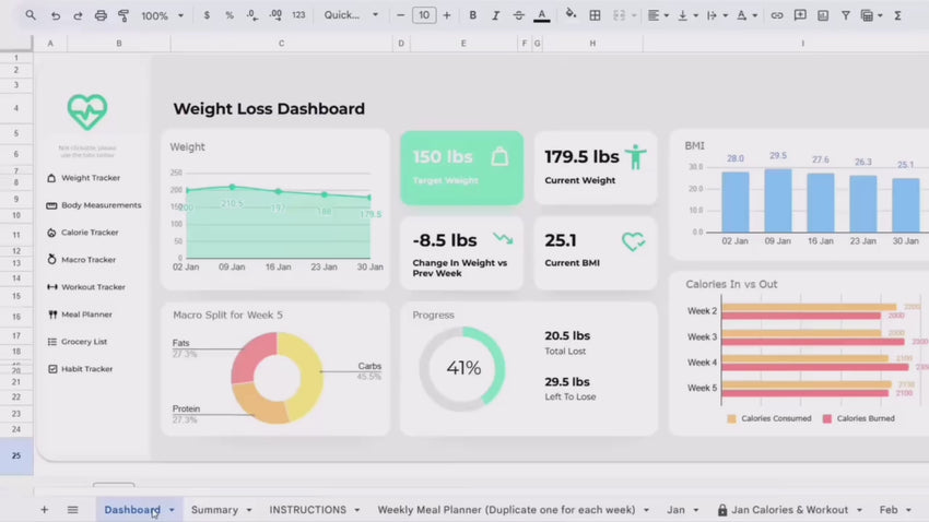 This Weight Loss Tracker & Body Measurement Tracker Template for Google Sheets allows you to: